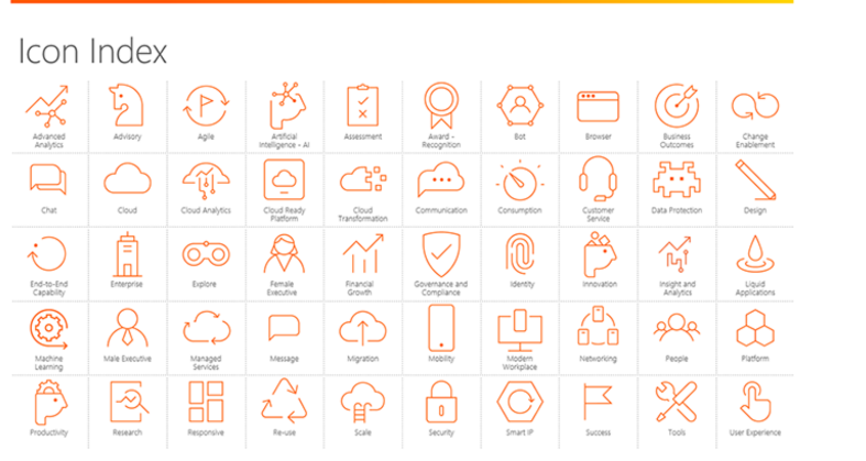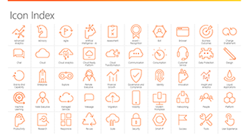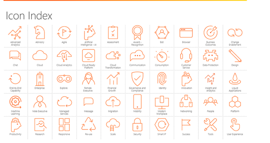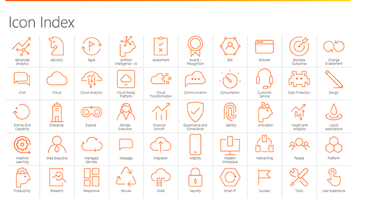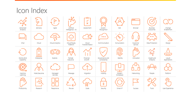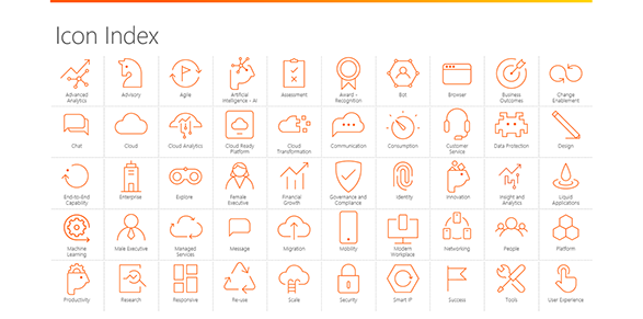Showing some common icons that are part of a library I with over 1500 elements. My role was creative direction an choosing the platform for our library, which was shared across a company of 30,000 users including brand and marketing.
