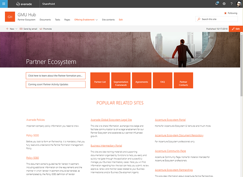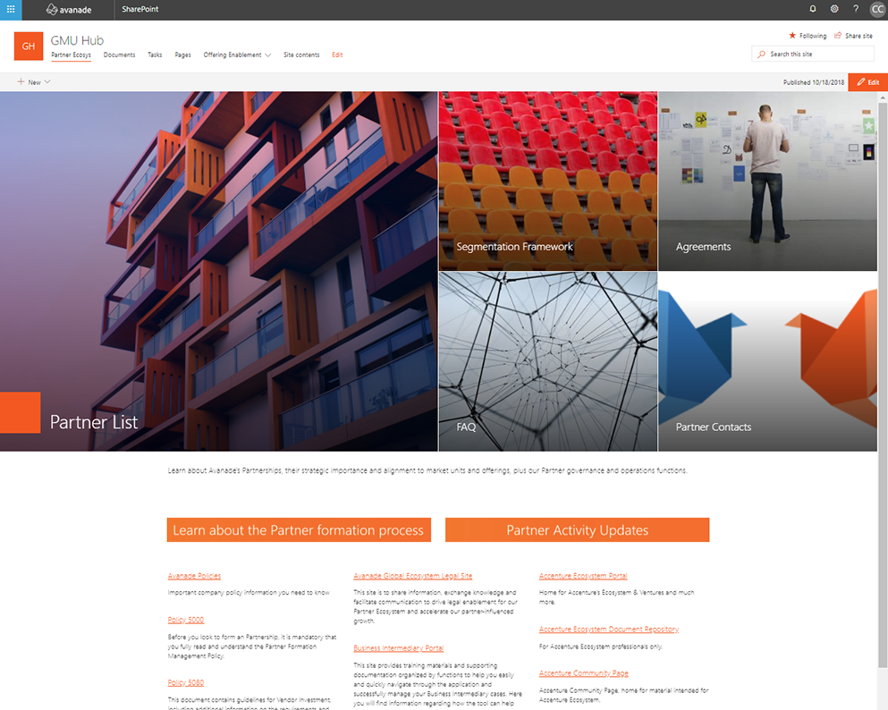 The site design and navigation is a visual option/update to the partners team site noted in the next slide. I have interaction design guidelines/wireframes for further conversation.