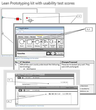 Testing design templates provides efficient template reuse with built in ease of use validation for future designs. Rapid Iterative Testing (RITE) of application verifies customer acceptance criteria