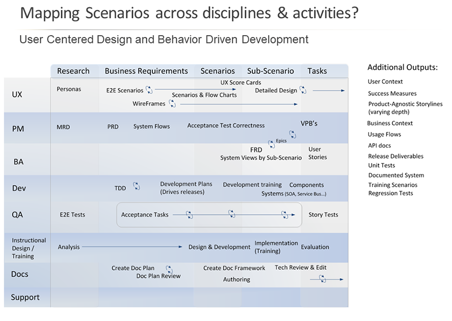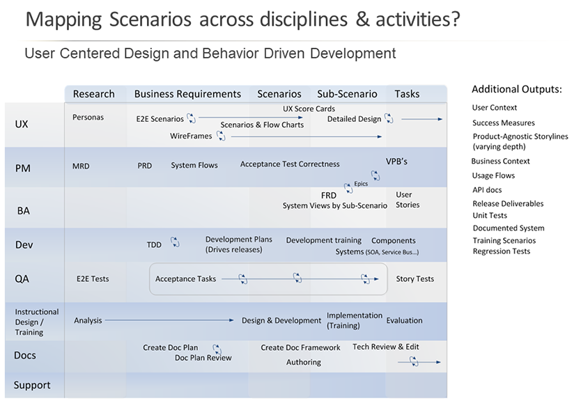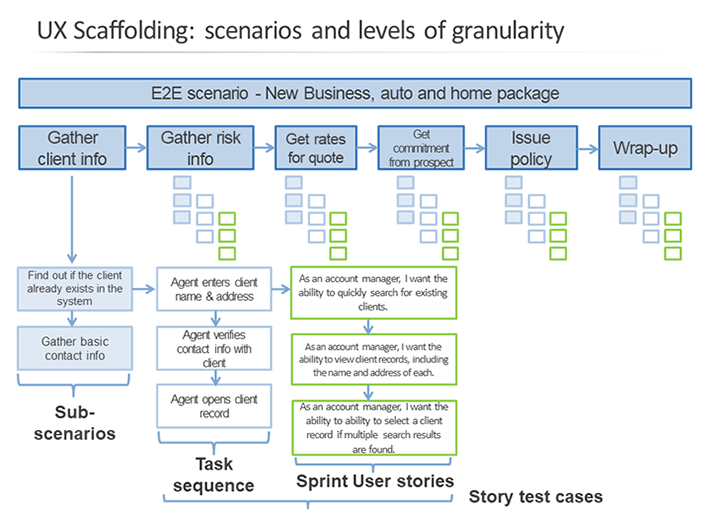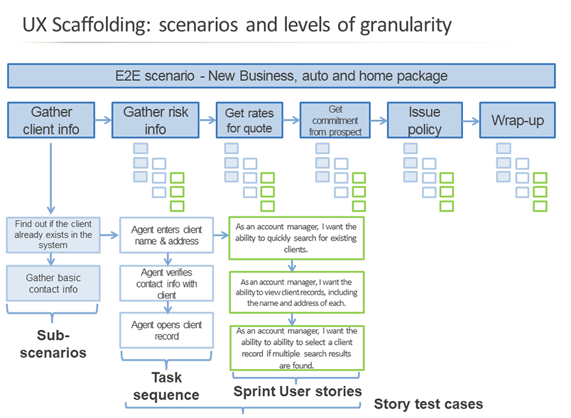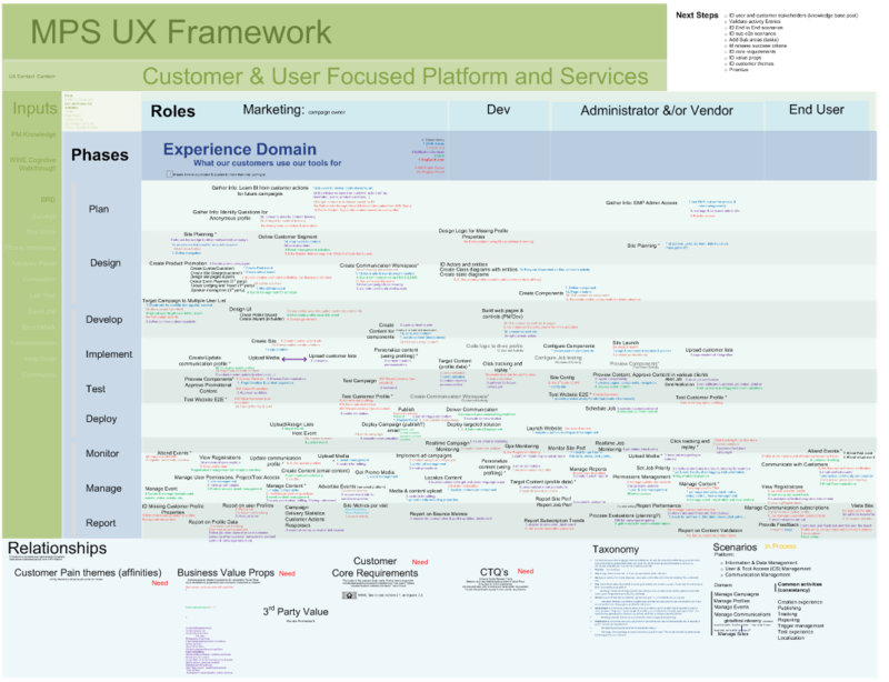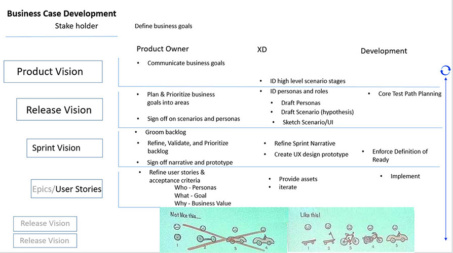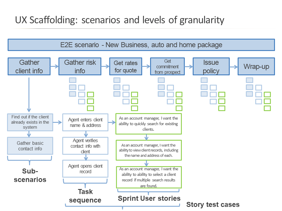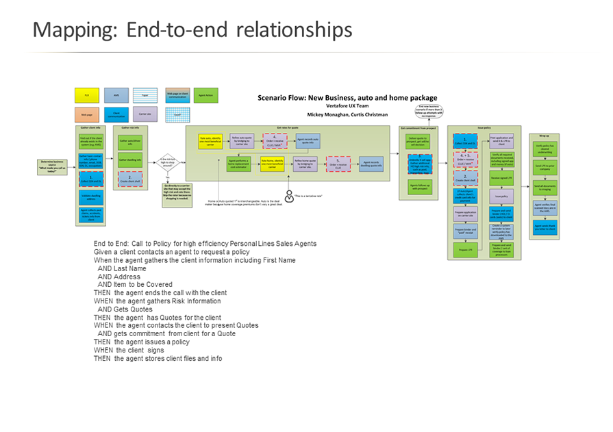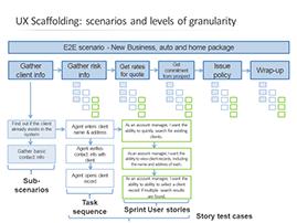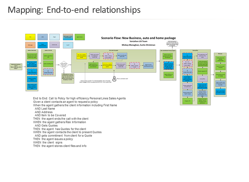 Here is a detail of the end to end user scenario. This provides consistency in direction for user needs, navigation, information architecture, early wire-framing, test planning, and design/development sprint planning.