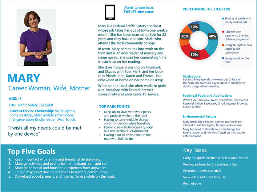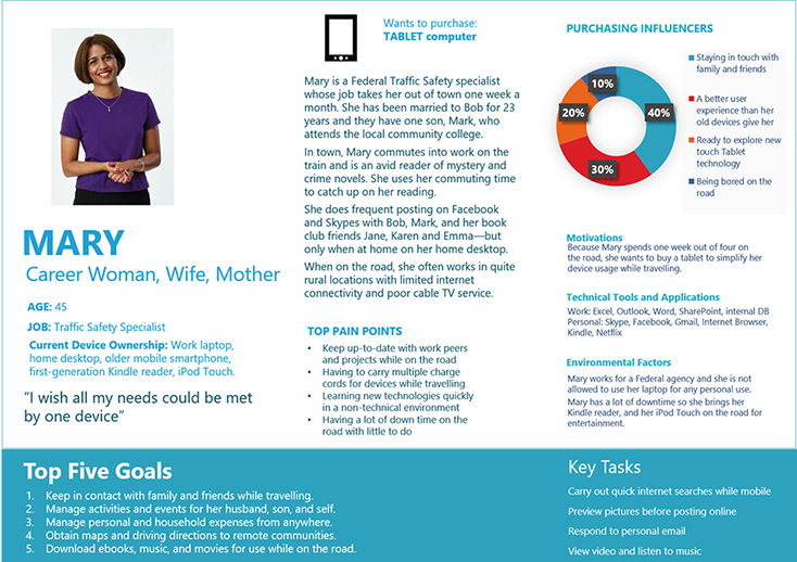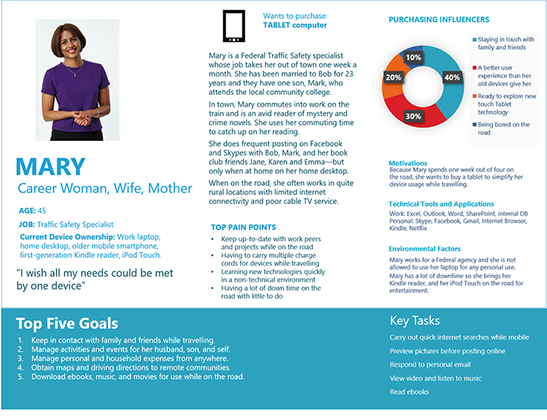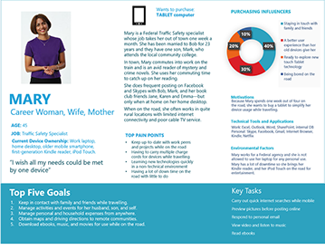 This shows a template that was part of a persona cookbook. Training teams that did not have UX resources on light research methods allowed improved communication and self direction on improving user experiences. I provided follow up reviews to assure quality.
