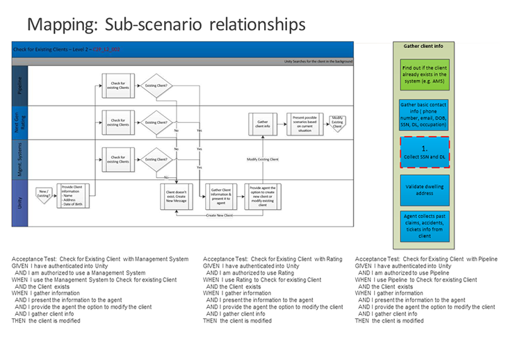 This detail shows a process I developed, pitched, and gained buy-in from development and executive leadership. Using scenario steps and working with development to create use cases that can be tested pre-code. This increased efficiency in the company by reducing QA bottlenecks, code was no longer required to created test cases.
